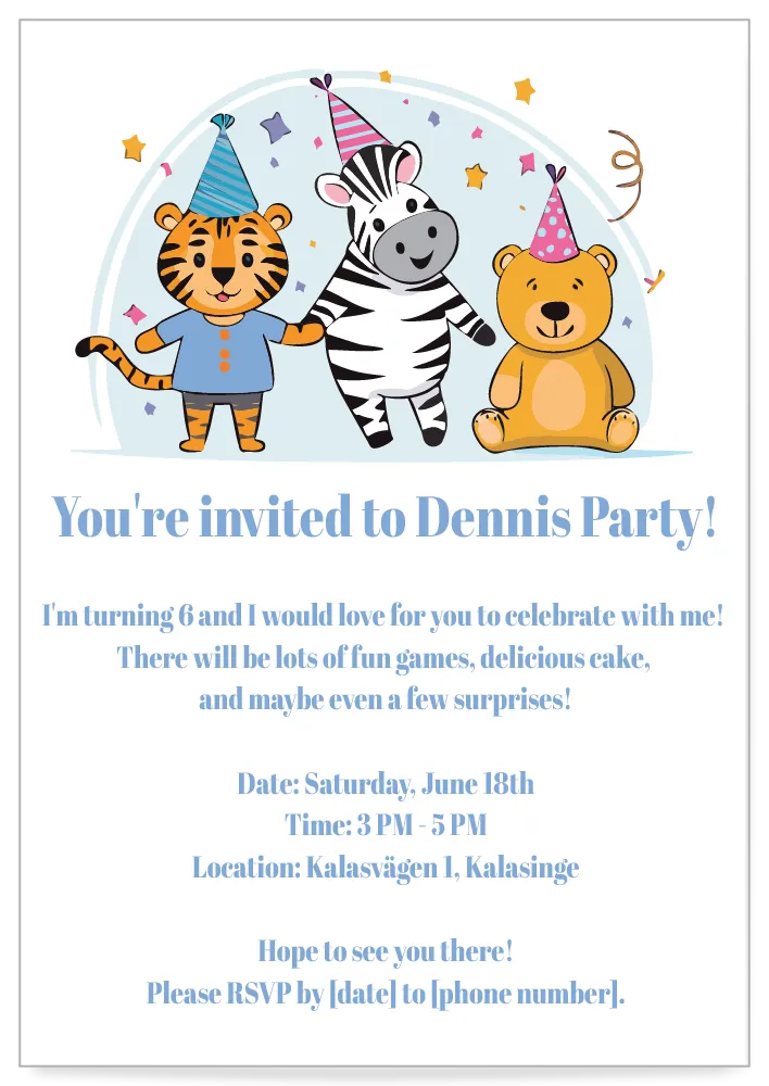 Make your little one’s birthday magical with this digital Zebra party invitation! Perfect for children’s parties, this charming invitation can be sent instantly via SMS, email, or social media – no printing, postage, or envelopes needed.
