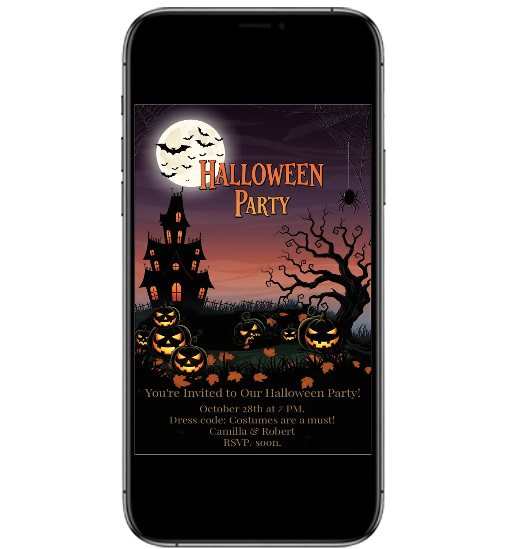 This modern digital halloween card beautifully encapsulates the joy of party and celebration. Share it effortlessly with all your guests to make a stunning first impression – all digitally.