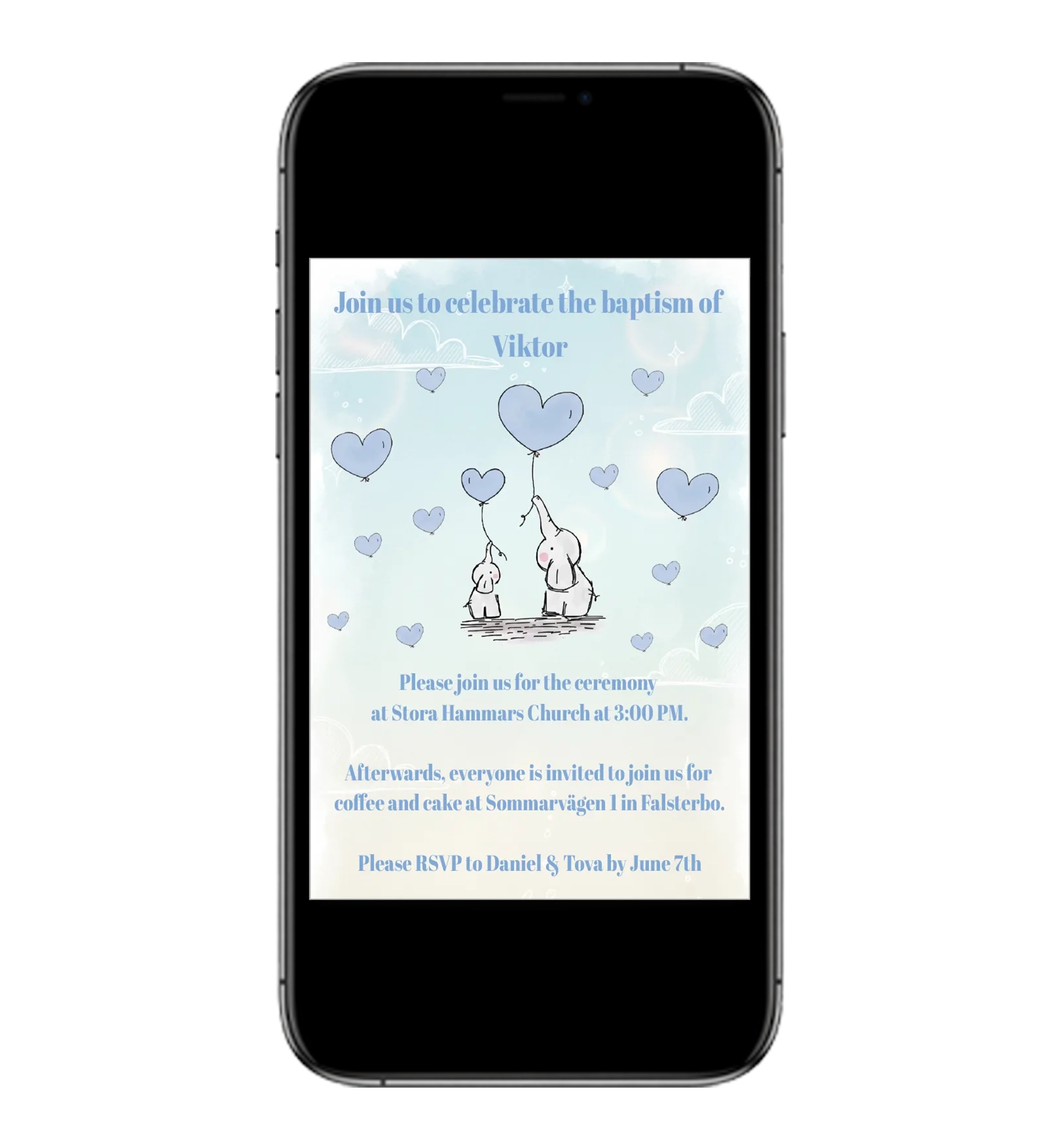 Make your child’s baptism unforgettable with this Blue Elephant Digital Baptism Invitation – personal, practical, and beautifully designed.