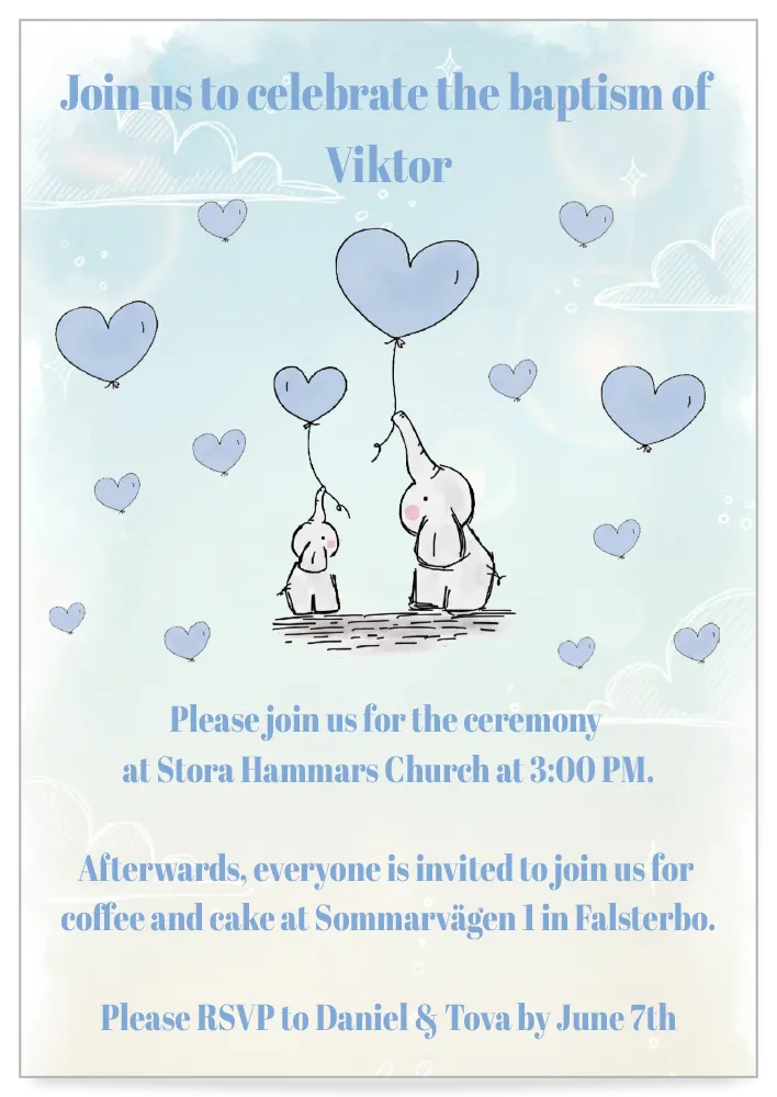 Digital Baptism Invitation Template Blue Elephant