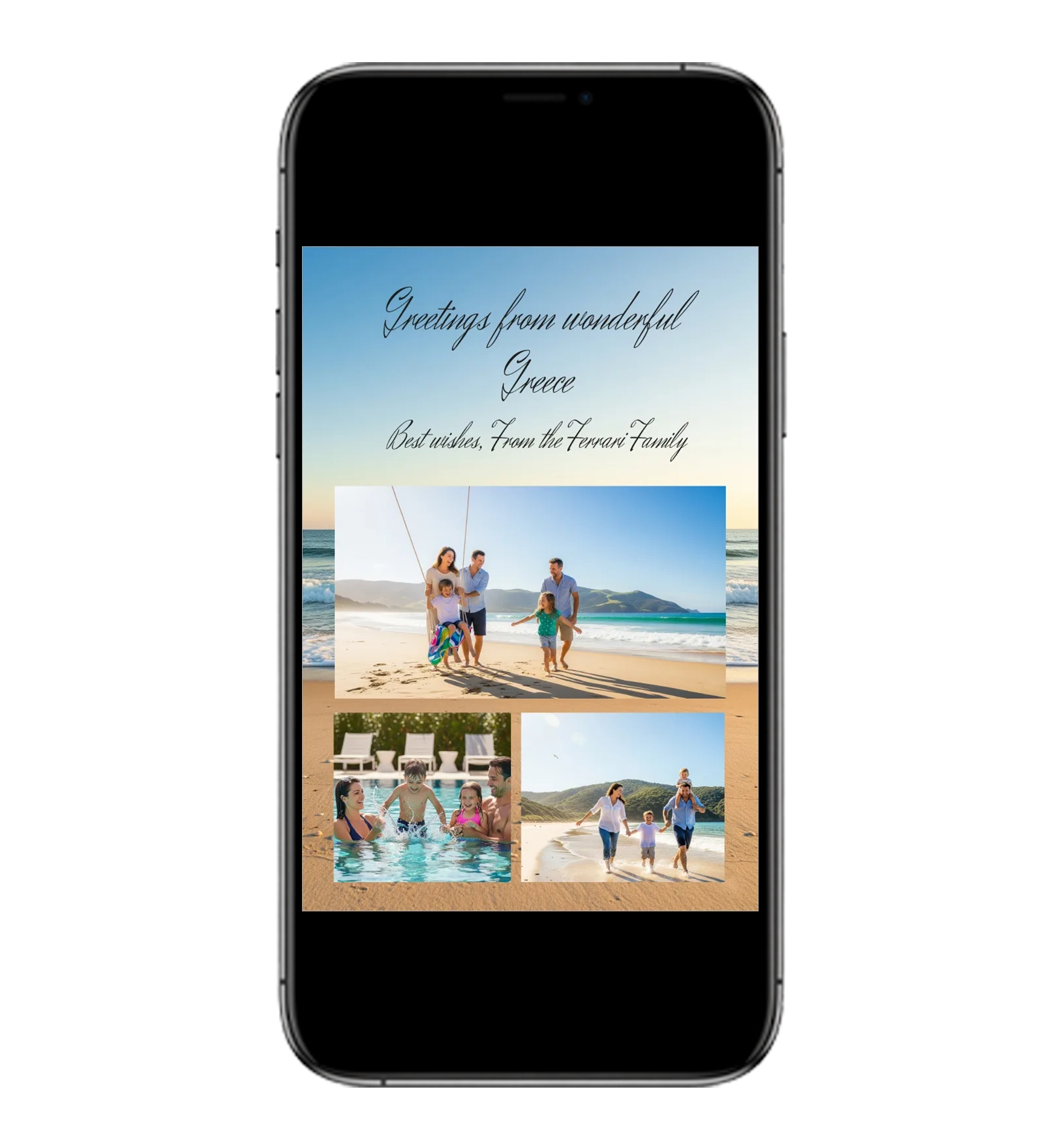 The perfect way to send warm greetings, holiday wishes, or a sunny “hello” to friends and family. Designed in a fresh, vibrant summer style, this template is ready to personalize with your own text and images.