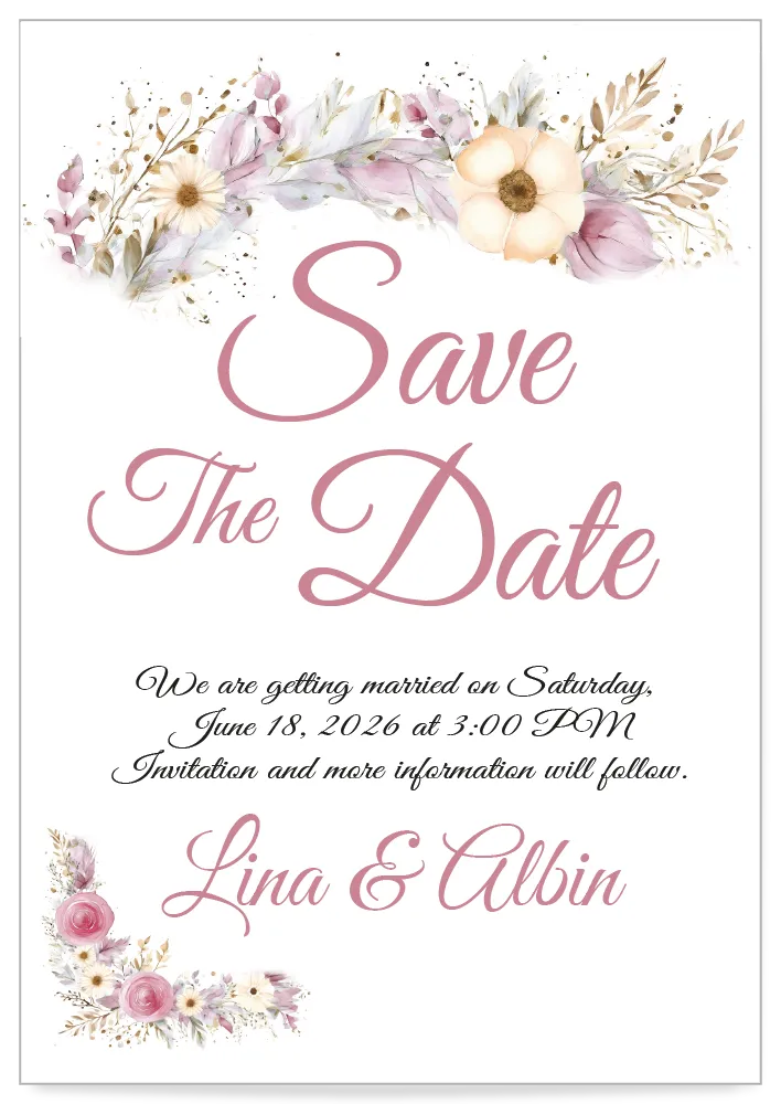 Give your guests a joyful preview of your special day with our stunning Digital Save the Date Card Template from the Floral Celebration collection. Featuring a bright, blooming design, this digital invitation template is ideal for weddings, garden parties, and other romantic celebrations.