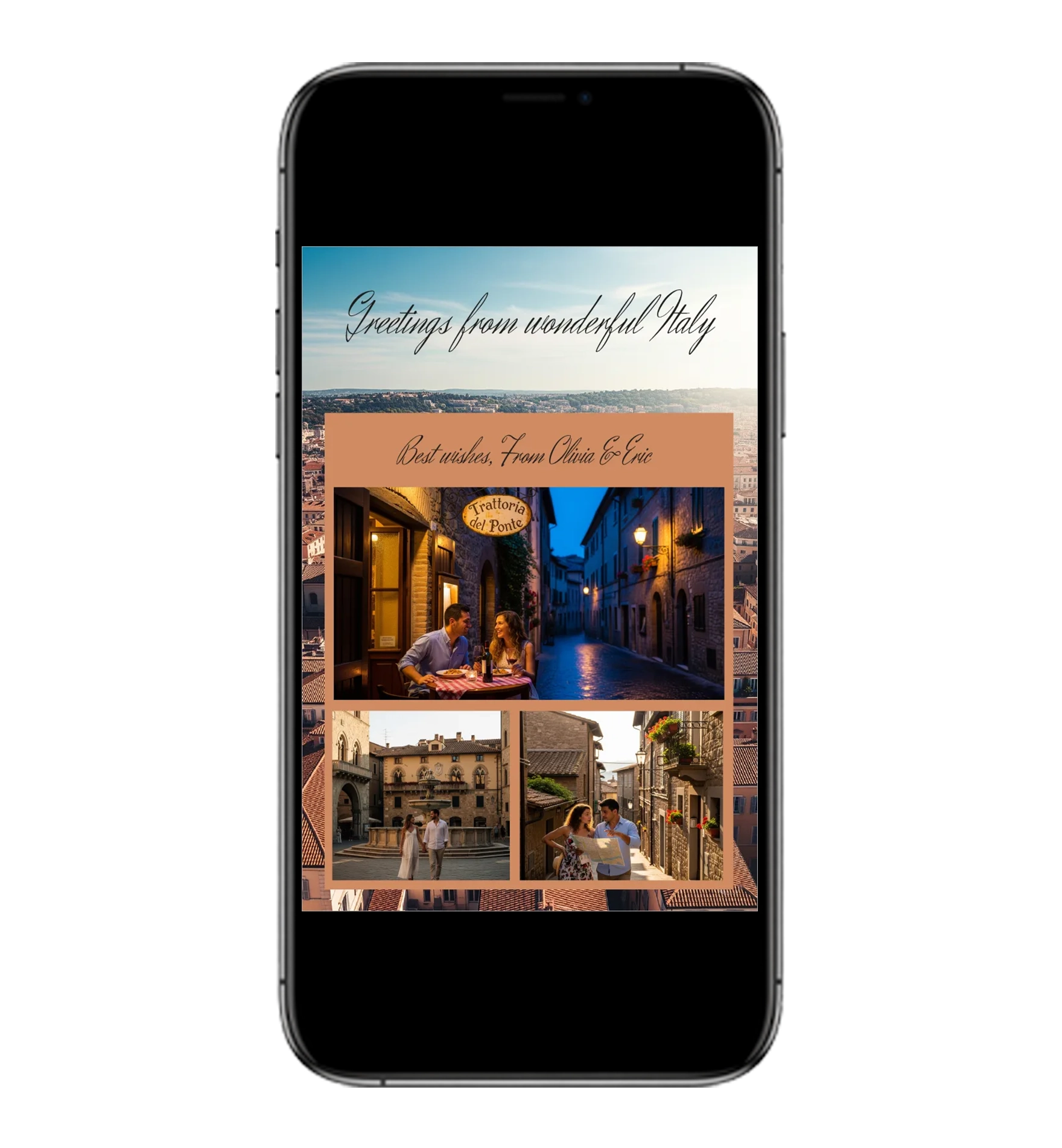 This clean, modern Digital Post card beautifully encapsulates the joy of traveling, love, and vacations. Share it effortlessly with all your friends – all digitally.