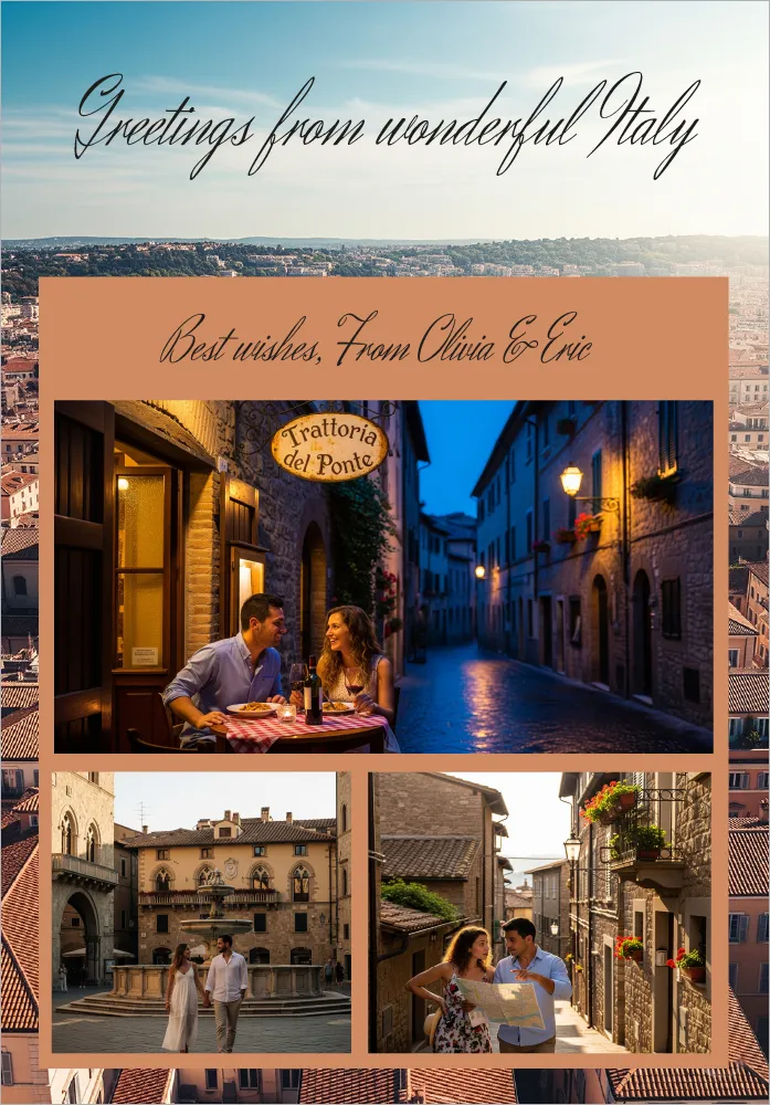 The perfect way to send warm greetings, holiday wishes, or a ”hello” to friends and family. Designed in a fresh, vibrant old city style, this template is ready to personalize with your own text and images.